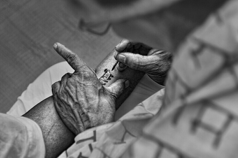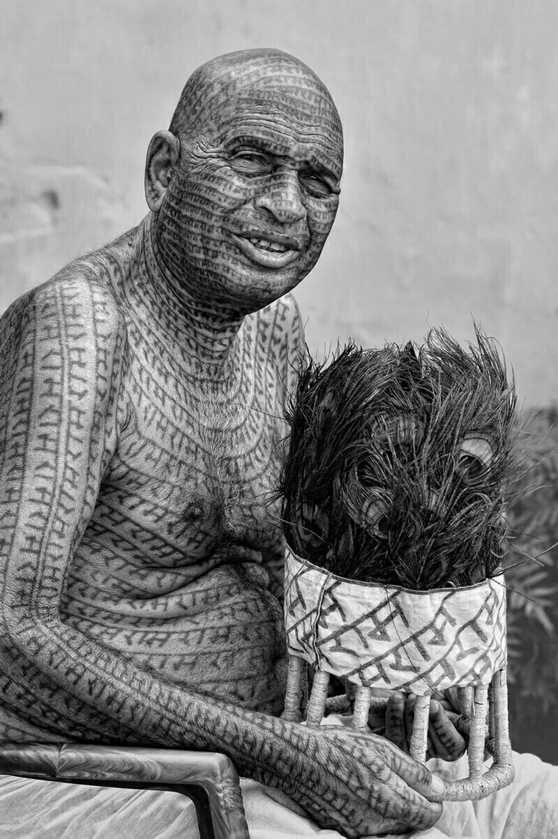 В Индии есть целое сообщество людей, которое не одно столетие проводит такие манипуляции со своим телом. Эти тату считаются священными, ведь они рисуют на своем теле во имя Бога. Их портреты, а также процесс создания татуировок, запечатлел фотограф Ли Хоанг Лонг (Ly Hoang Long).