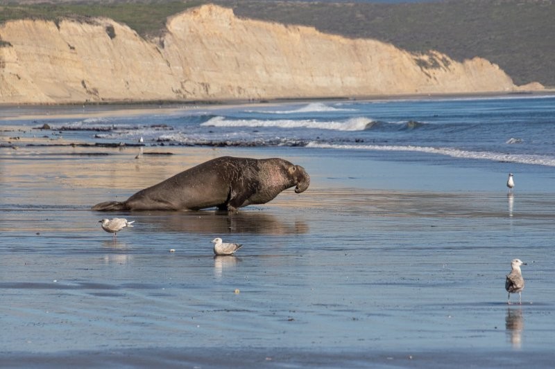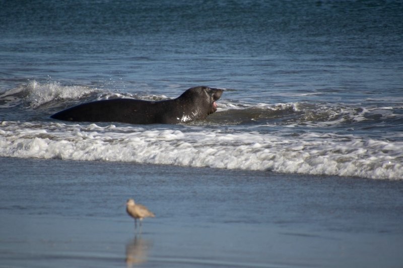 В сезон размножения (примерно с декабря по март) морские слоны стараются сохранить энергию для спаривания и борьбы с соперниками. А наш герой не только оставил свой гарем самок, но и потратил ценную энергию.