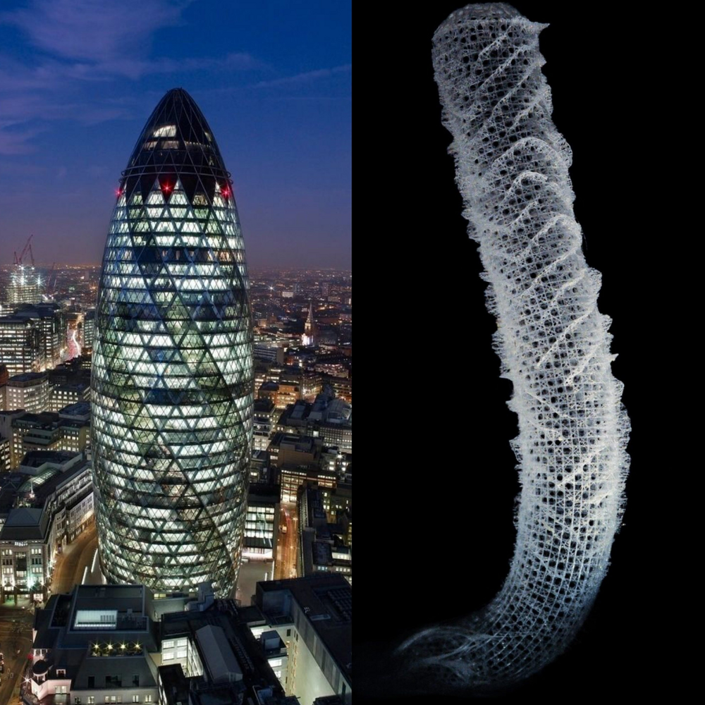 Знаменитые на весь мир Эйфелева башня, лондонский небоскрёб-сигара, барселонский отель и многие другие постройки были спроектированы по принципам стеклянных губок. И это только начало! Ведущие инженеры и исследователи говорят, что шестилучёвки помогут человечеству строить лучше, выше, больше и надёжнее. Причём не только небоскрёбы: эти же принципы вполне применимы и к огромным мостам, и даже к космическим кораблям! Так в чём же секрет стеклянных губок?