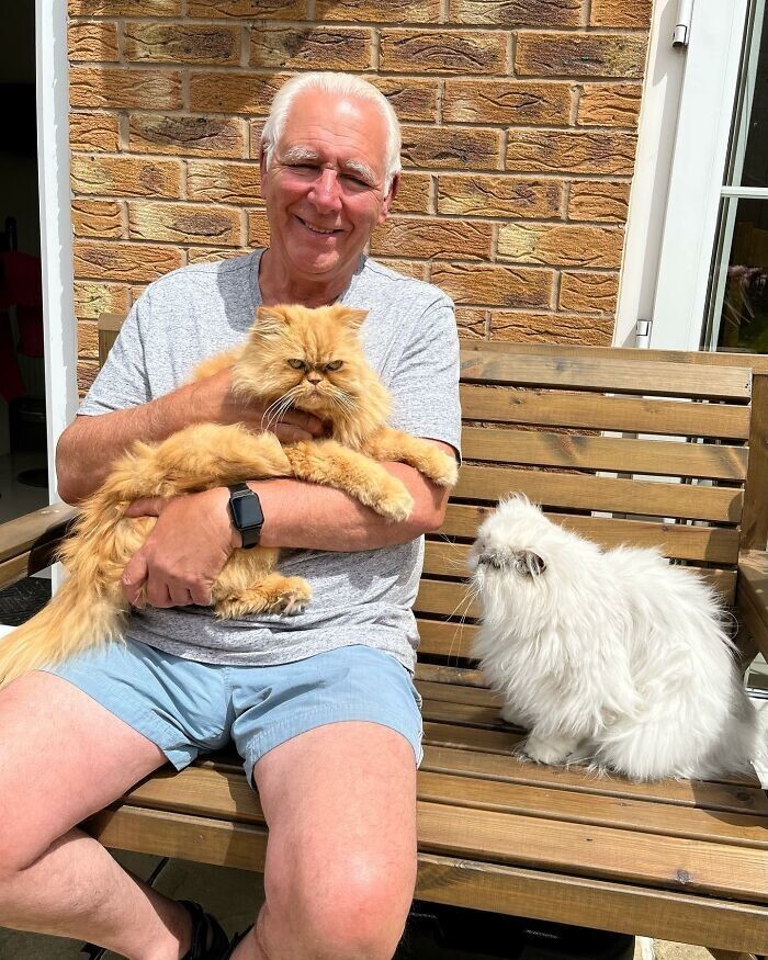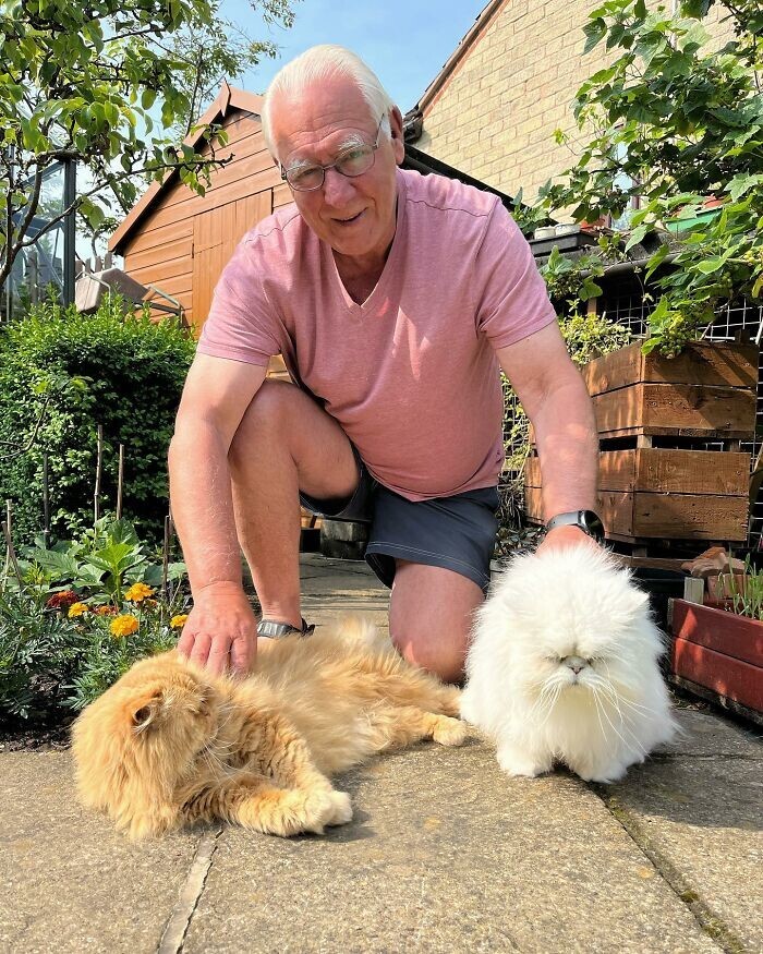 "Мы взяли их вместе, когда им было по 7 месяцев, из семей, которые больше не могли о них заботиться. Тедди — самый спокойный кот на свете и круглосуточно требует вкусняшек, а Каспер предпочитает сидеть у нас на коленях, только когда ему вздумается. От них всегда так много шерсти, что мы решили использовать её с пользой. Сначала мы вешали её на забор, а потом стали помещать в клетки," — говорит хозяин.