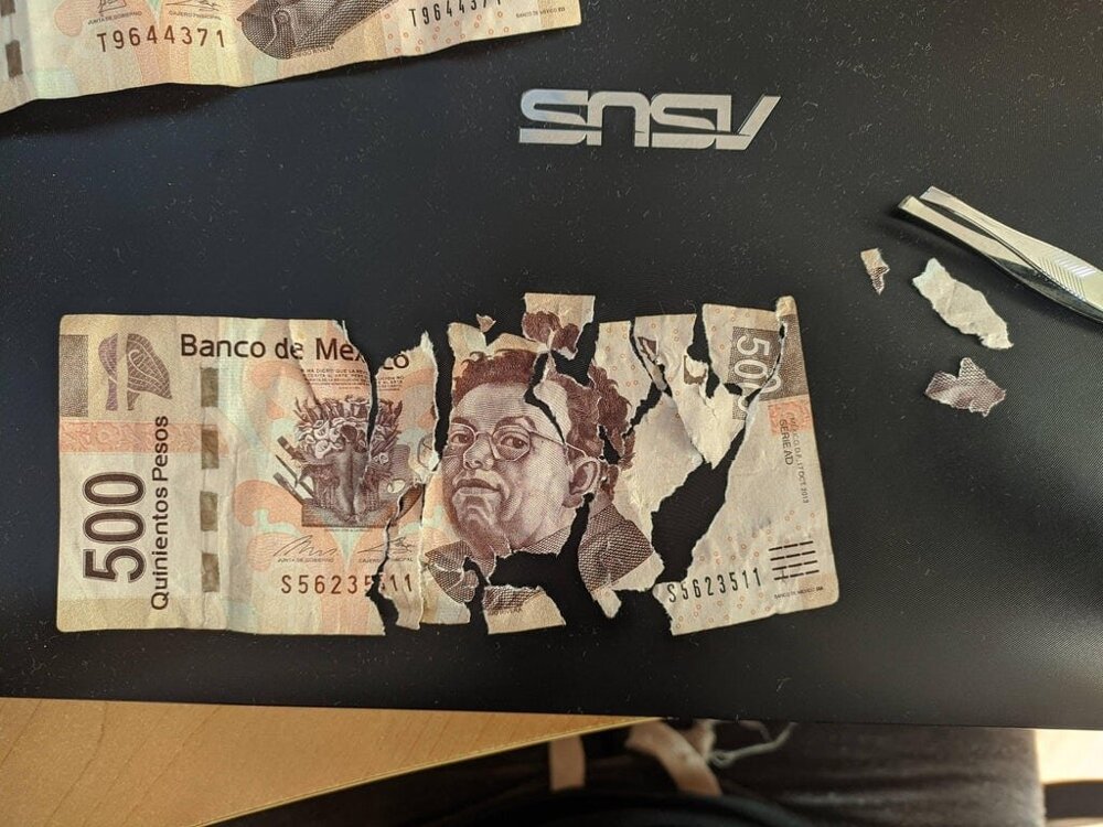 Щенок умудрился перекусить купюрой в 500 мексиканских песо — это около 15 долларов.