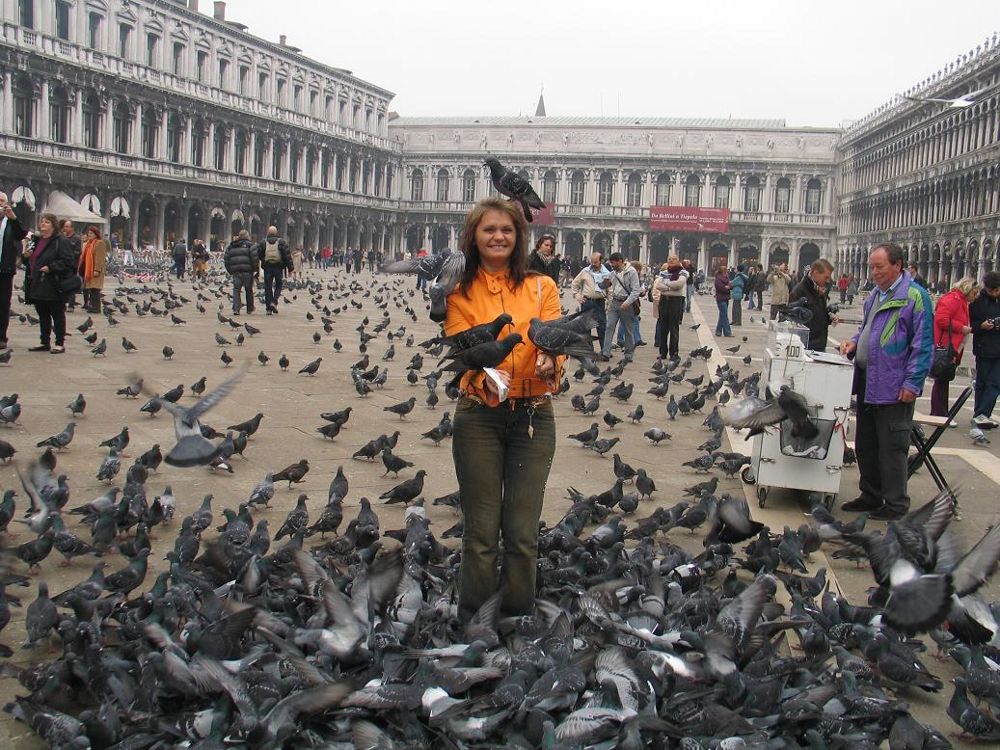 Самое популярное место, где люди кормят голубей и фотографируются с ними — площадь Сант-Марко. Сейчас подкармливать птиц запрещено. За это вы получите штраф в 500 евро.