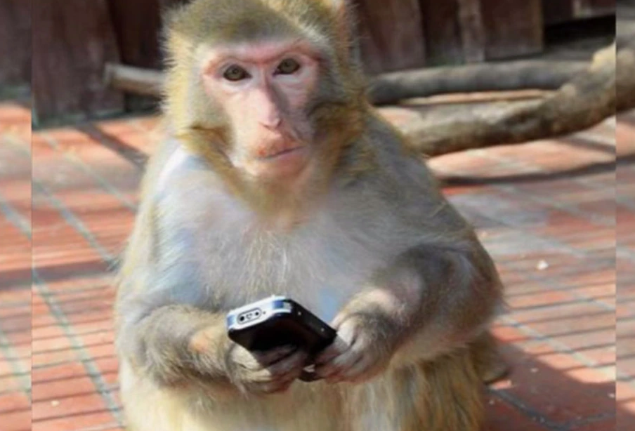 Хоспадя, какая дешевка! Обезьяна укоризненно смотрит на туриста с недорогим телефоном