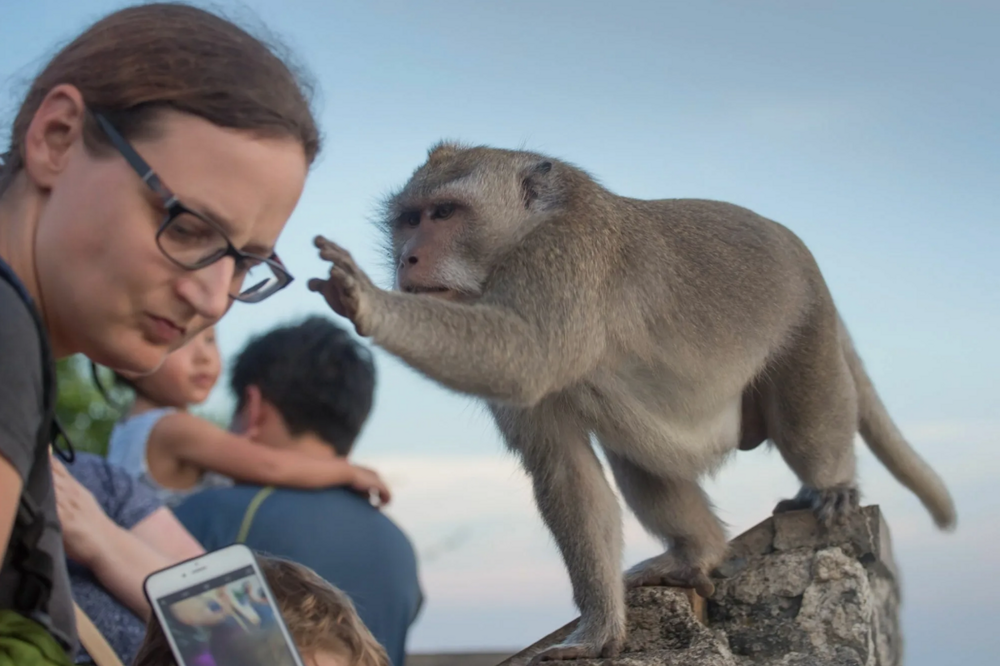 Так в первую очередь обезьяна старается украсть смартфон. Даже если он недорогой, без него человек в чужой стране, как без рук.