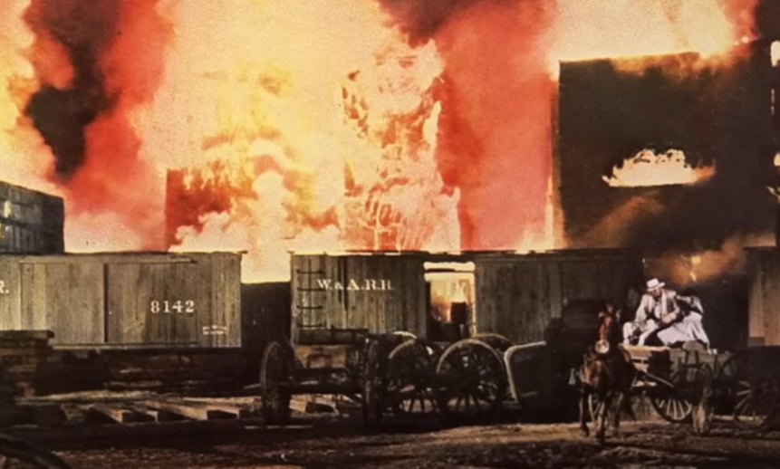 Примечательно, что пожар был самым настоящим. В тот самый момент горели декорации, которые остались после съемок предыдущего фильма. Съемки этой сцены обошлись студии в 25000 долларов, зато компания получила сочные и реальные кадры масштабного пожара.