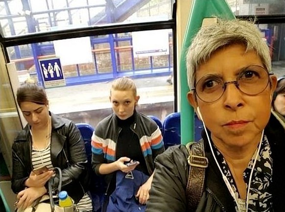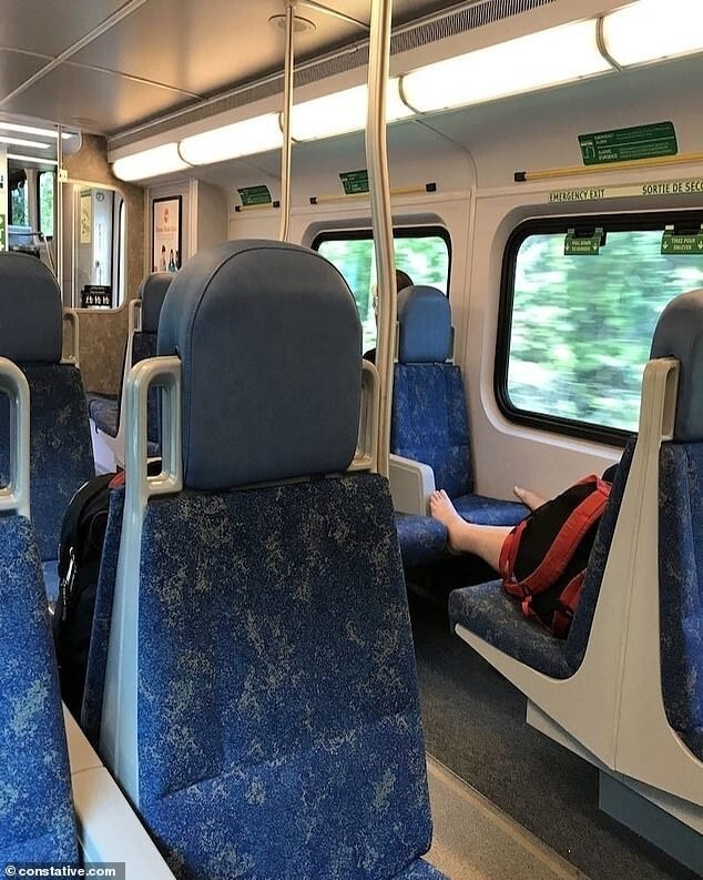 Наглая молодежь сидит на местах для инвалидов, хотя прямо перед ними стоит пожилая женщина.