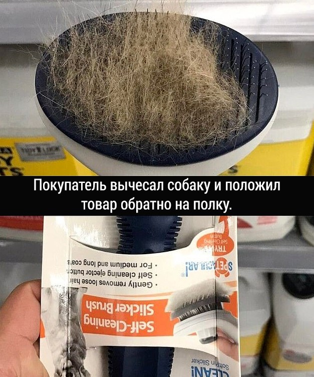 Покупатель вычесал собаку и положил товар обратно на полку.