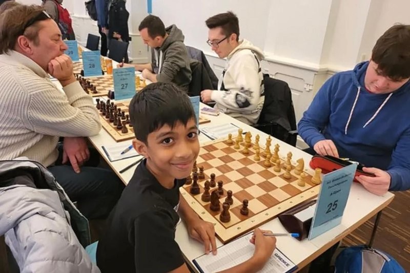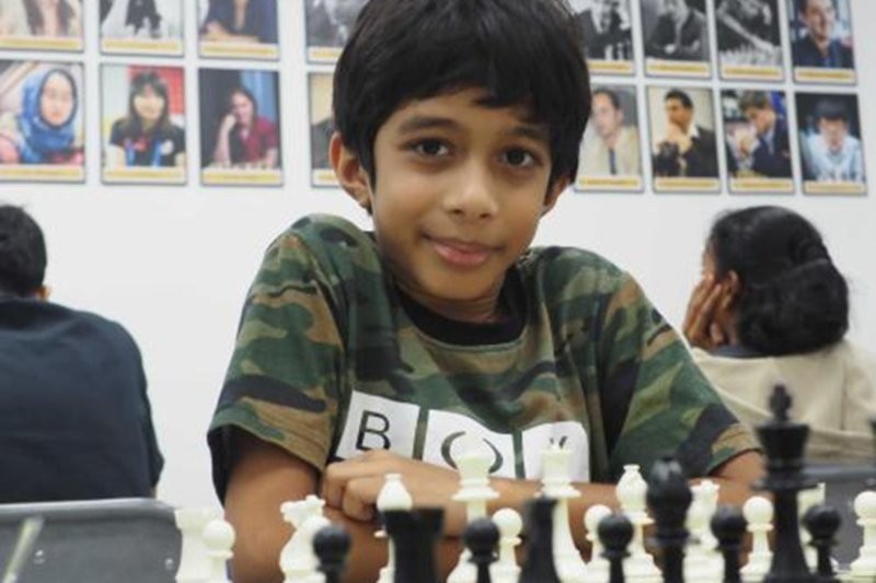 Мальчик индийского происхождения играет в шахматы по семь часов в день и занимается по старой шахматной программе. Он обладает феноменальной фотографической памятью.