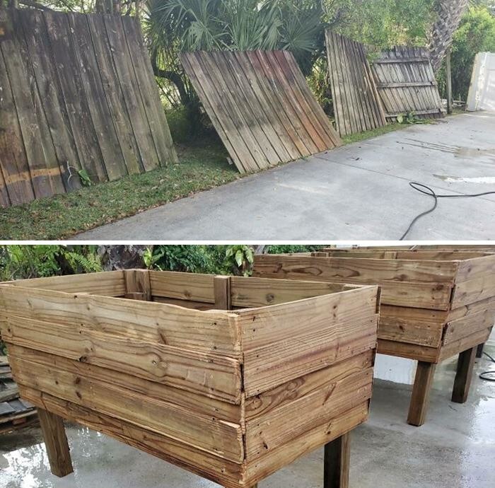 7. "Уговорил друга не выбрасывать старый забор и построил из него ящики для рассады"