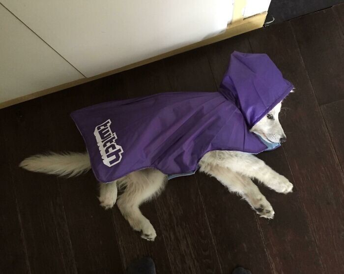 22. "Дождевик для собаки из сломанного зонта (она не в восторге)"