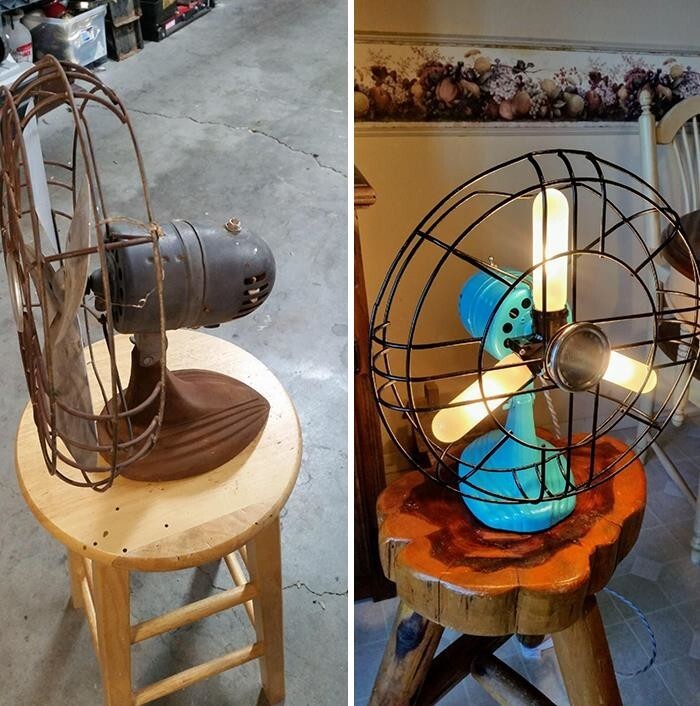 9. "Сделал из старого вентилятора с убитым мотором лампу"