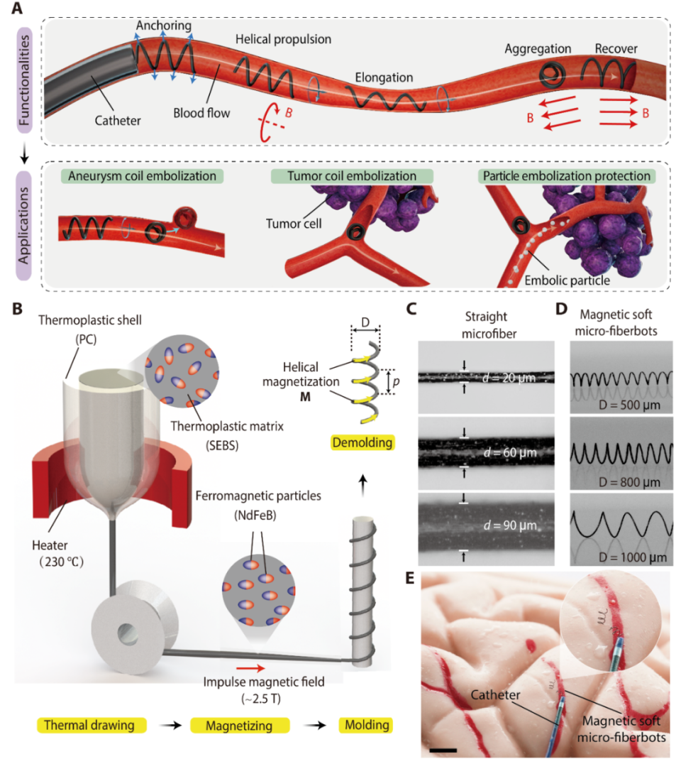 Магнитный робот из мягкой микрофибры, используемый для роботизированной эмболизации