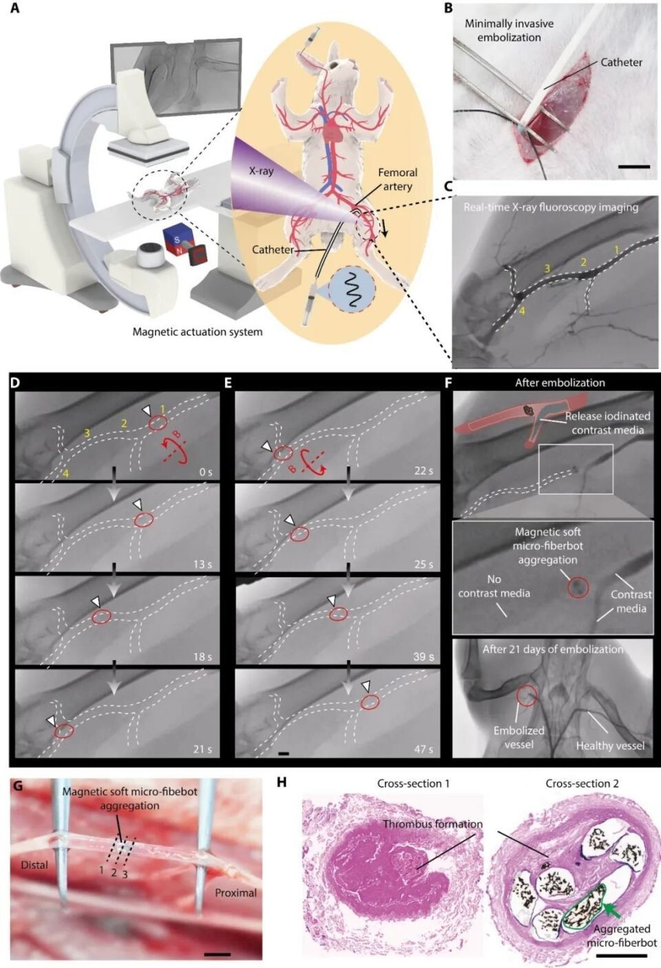 Предварительные тесты, проведенные исследователями на моделях кровеносных сосудов и кроликах, показывают, что эта инновационная технология принесет надежду в клиническое лечение. «Мы твердо верим, что наш магнитный робот из мягкой микрофибры заложит прочную основу для будущего неограниченного роботизированного эмболизационного лечения аневризм и опухолей головного мозга, привнеся революционные прорывы в эту область».