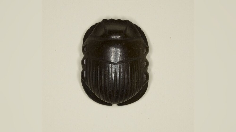 Амулеты в виде жуков-скарабеев тоже иногда хоронили вместе с умершими. Египтяне считали, что священный скарабей двигает солнце по небу, подобно тому, как жук-скарабей двигает шарик навоза по песку. Их обычно вшивали в мумию, и они служили защитой для покойного.