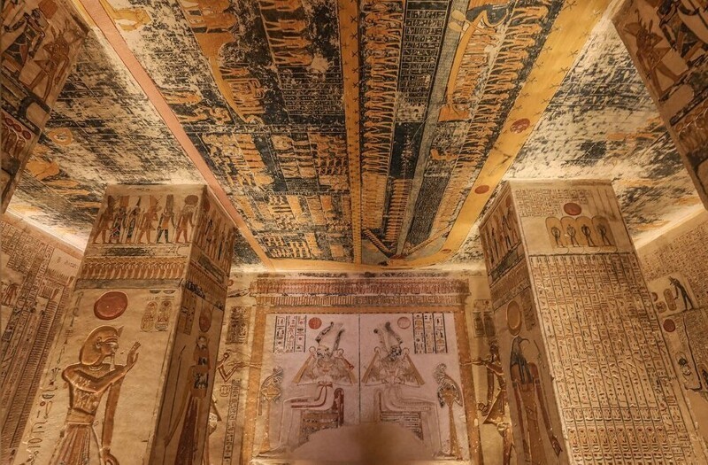 Иногда гробницы зажиточных древних египтян украшали настенными росписями. Там могли нарисовать самые разные мотивы: портреты умерших, изображения богов, изображения людей, оплакивающих умершего. Также на стенах гробниц рисовали и сцены из повседневной жизни Египта, растения, животных, моменты спортивных состязаний. Рядом с рисунками часто были иероглифы, указывающие, кто был похоронен в гробнице и чем он занимался при жизни.