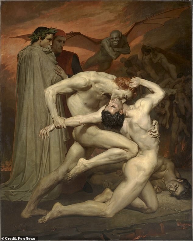 Данте (в красном капюшоне) во время своего путешествия в ад, 1850 год, автор Вильям-Адольф Бугро