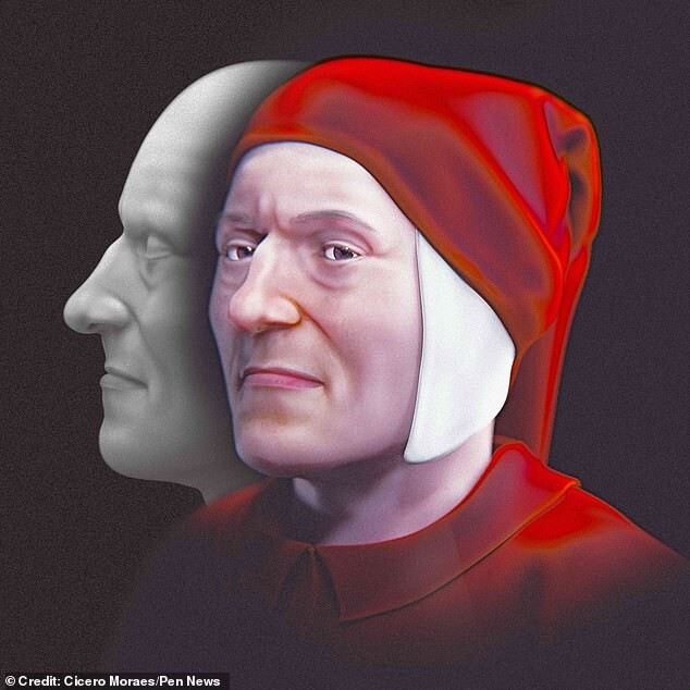 Данте был, к несчастью, изгнан из родной Флоренции в 1302 году и умер в Равенне в 1321 году. По словам Мораиса, результат их реконструкции показывает лицо измученного человека. «Это лицо гениального человека, но озлобленного изгнанием», — добавил он.