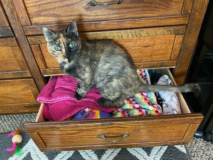 Когда Сара привела Полли домой, казалось, она уже долгое время там жила: кошка крайне быстро освоилась. Несмотря на отсутствие зубов, она может есть и влажный, и сухой корм. Глухота ей никак не мешает, и она прекрасно всё чувствует. Теперь хозяйка частенько публикует фото Полли в сети, призывая всех не бояться брать пожилых питомцев из приютов.