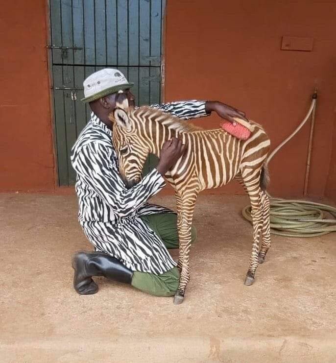 23. Жеребята зебры запоминают полосатый узор мамы. Смотрители фонда дикой природы Шелдрика носят специальный костюм, чтобы ухаживать за осиротевшими жеребятами