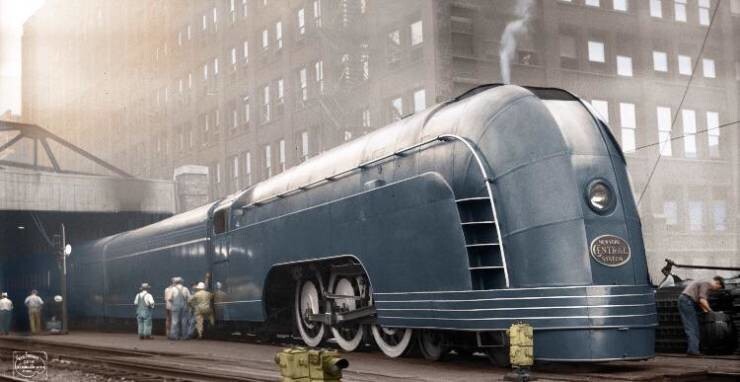 15. Раскрашенная фотография поезда «Меркурий» в стиле ар-деко, Чикаго 1936 год.