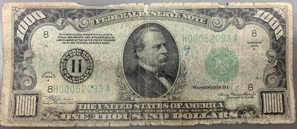 2. «Клиент принес в банк купюру 1934 года номиналом 1 000 долларов»