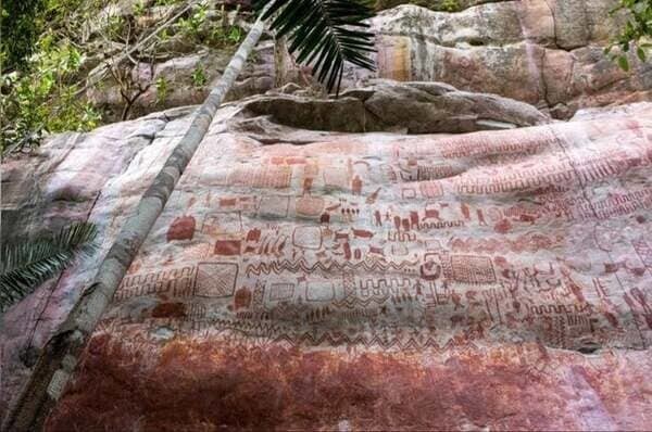 1. В дождевых лесах Амазонии обнаружили 13-километровое «полотно», полное рисунков ледникового периода, которые изображают давно вымерших существ
