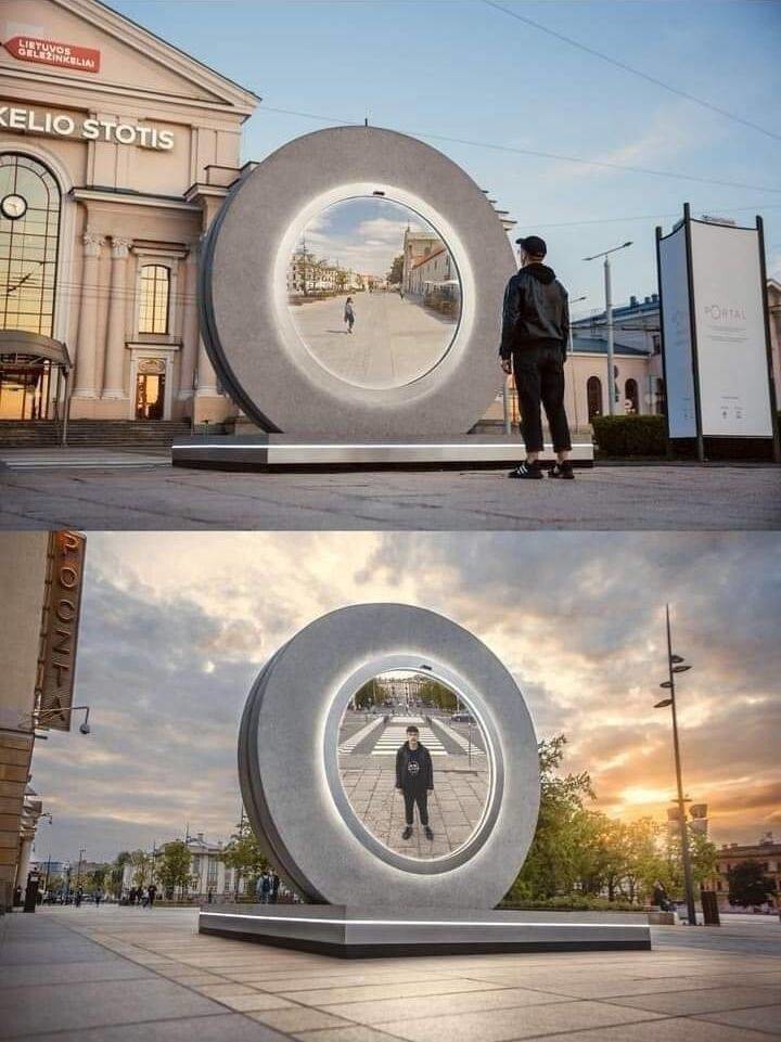 40. В Вильнюсе установили «портал» в польский город Люблин, который позволяет людям видеть друг друга в режиме реального времени