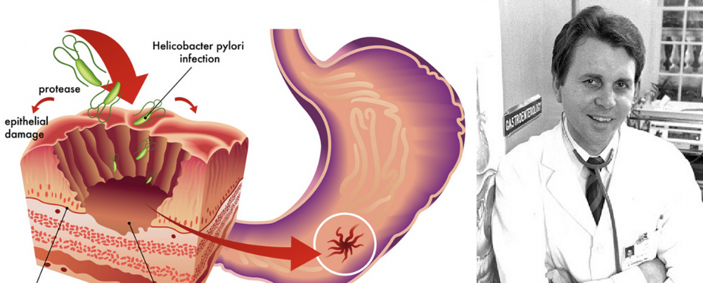 Барри Маршалл доказал, что язва желудка в большинстве случаев вызывается бактерией Helicobacter pylori. Но заставить людей поверить в это было непросто. Считалось, что появлению язвы способствуют образ жизни и избыток желудочной кислоты, поэтому когда он предположил, что причиной может быть бактериальная инфекция, ему никто не поверил. В 1984 году Маршалл сам выпил культуру бактерии, выделенную от больного, и у него развилась язва, которую он благополучно вылечил. За это открытие он и другой учёный, Робин Уоррен, получили Нобелевскую премию.