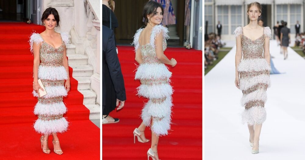 Тот случай, когда на актрисе платье смотрится чуть лучше, чем на модели маскулинного типа. Будем честны, это не самое удачное платье Chanel с шикарного показа коллекции весна-лето 2022.