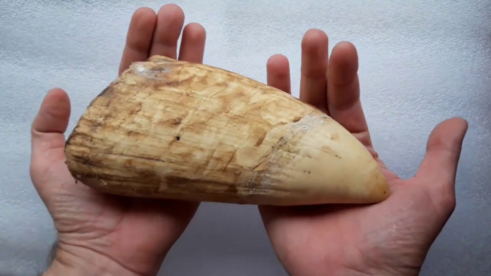Первый, кто нас встречает в этом топе, — кашалот (Physeter macrocephalus). Длина зуба у 20-метрового гиганта — 27 см, а вес — 1 кг. Если наглядно, то один зуб = полторы ладони! Растут они только на нижней челюсти и всего их может быть до 30 пар!