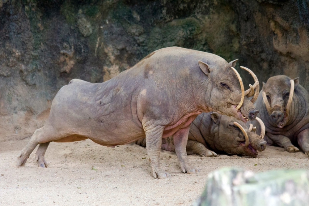На четвёртом месте вас приветствует мадам бабирусса (Babyrousa babyrussa). Эта индонезийская свинка Пеппа утёрла нос самому кашалоту и отрастила клычища длиной в 30 см. Причём длинные у пяточка все 4 клыка — и верхние, и нижние.