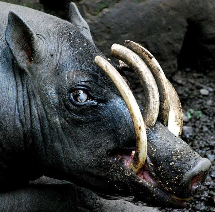 Да, вы всё правильно увидели. Верхние клыки бабируссы растут прямо из носа.