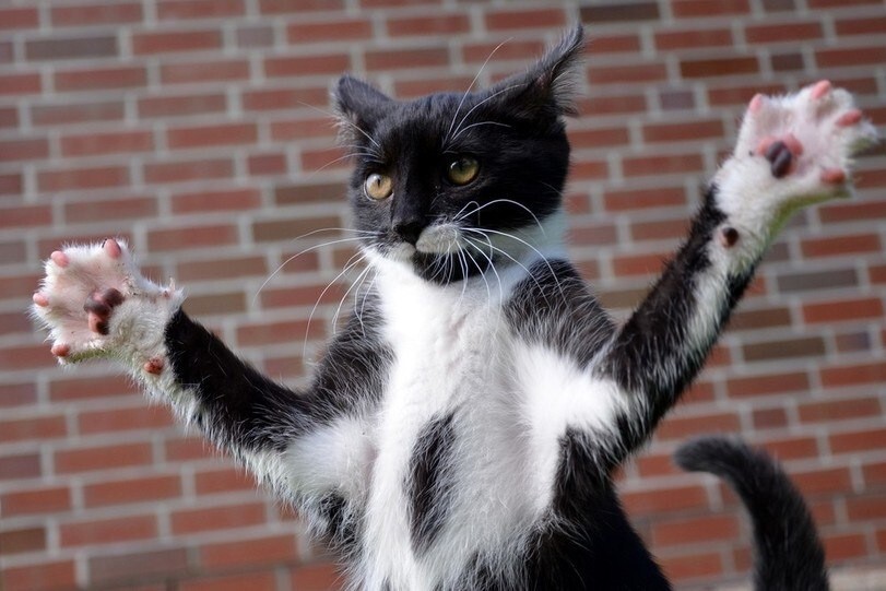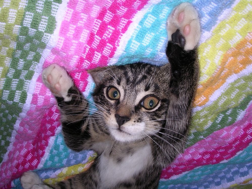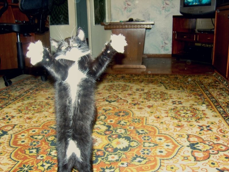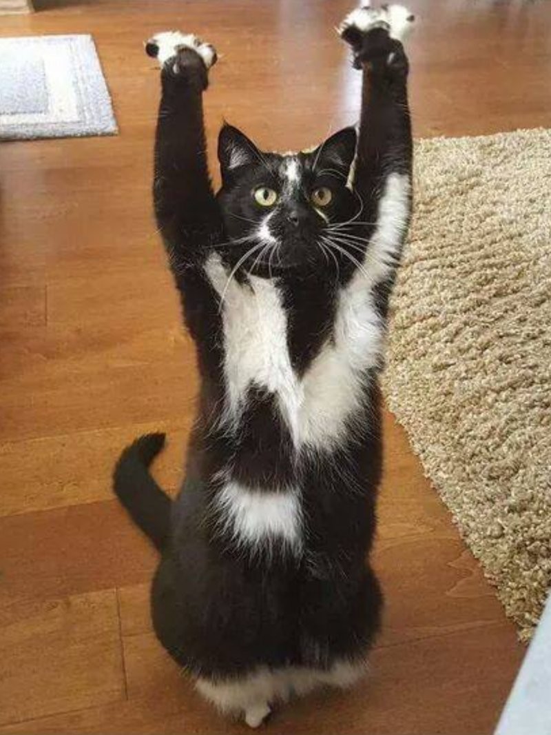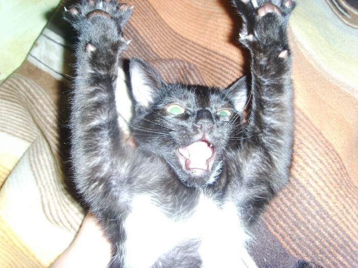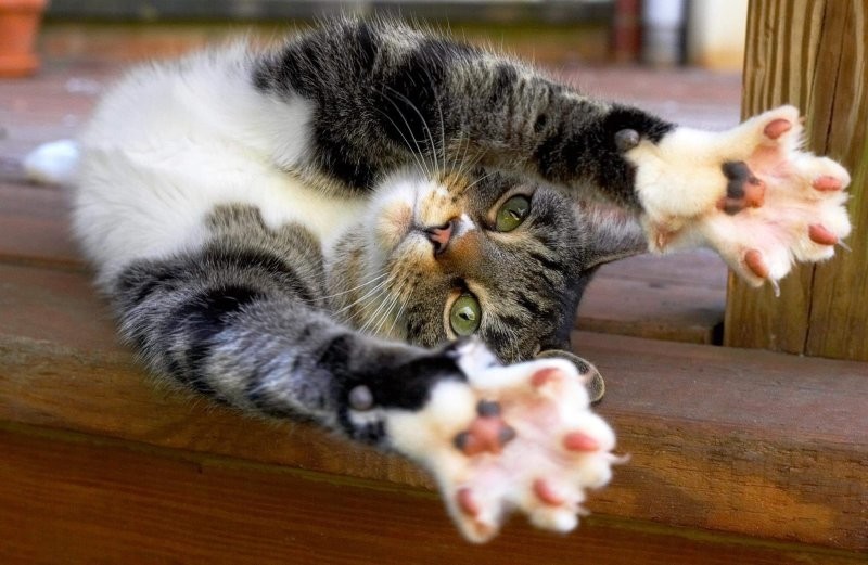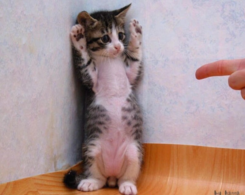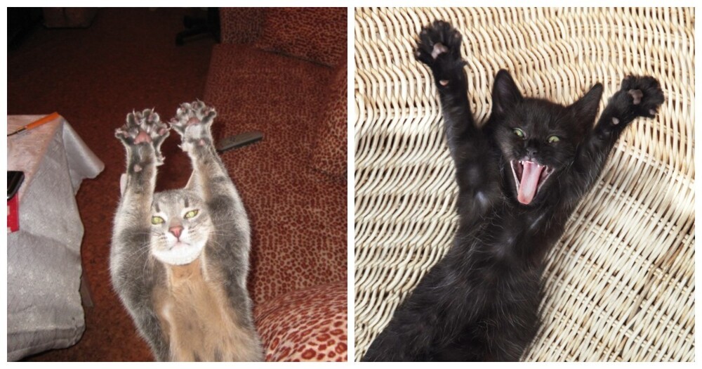 Но коварство котиков в том, что жест сдающегося для них значит только лишь кратковременную передышку перед тем как перегруппироваться и снова напасть на занавеску, швабру или хозяйскую ногу. Не верьте пушистым, они хитрят. А пока не верите, можете сделать подобные фото.