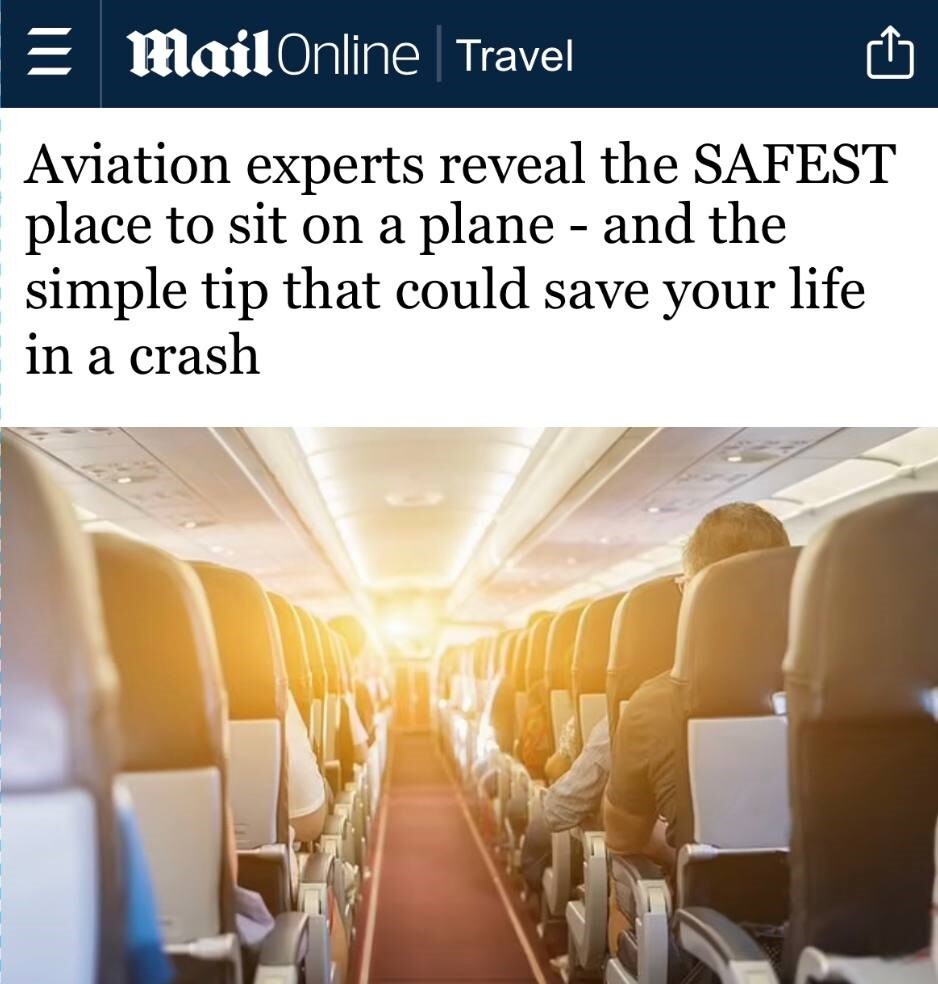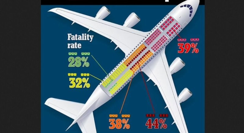 Журнал Time сообщил, что, изучив расположение рядов, они обнаружили, что средние сиденья в задней части самолета показали наилучшие результаты - всего 28% случаев со смертельным исходом.