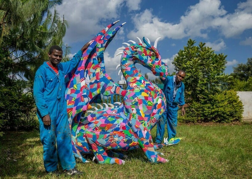 Одна инициативная группа кенийцев не только помогает делать пляжи чище, после уборки они создают яркие произведения искусства. И мы тут не лукавим, скульптуры действительно настолько классные, что могли бы украсить любой дом или даже торговый центр. Все эти фигуры ниже сделаны из старых шлепанцев.