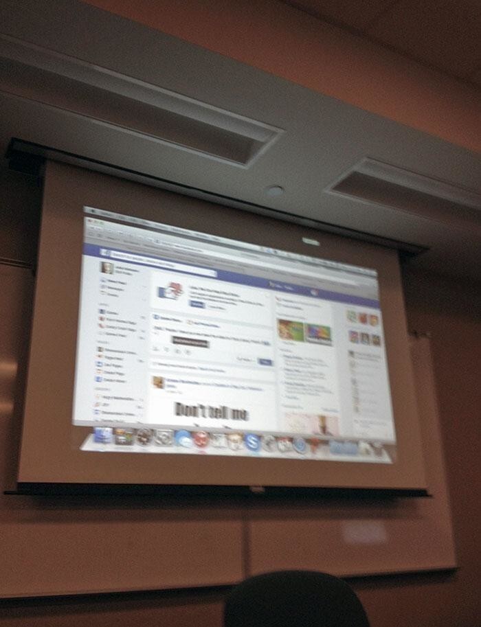 22. "Мой препод заскучала на уроке и залезла на Фейсбук. Она не заметила, что ее ноутбук все еще подключен к проектору"