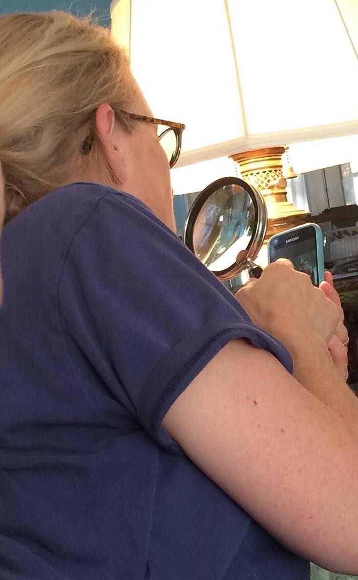 40. "Мама использует лупу, чтобы разглядеть, что там у меня в телефоне. Люблю ее до смерти, но с техникой у нее не очень".