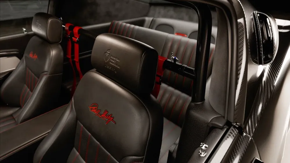 Завидную динамику обеспечивают не только характеристики мотора, но и масса спорткара. Благодаря карбоновому кузову он весит 1450 килограммов. Поворачивает рестомод за счёт полностью независимой подвески с регулируемыми койловерами, останавливается при помощи тормозов Wilwood с шестипоршневыми суппортами.