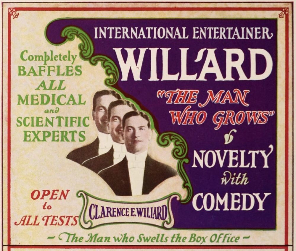 Уиллард, родившийся в 1882 году, делился своими талантами далеко за пределами посольства. Ещё мальчиком он начал работать в цирке Барнума и Бейли, а затем провёл годы, выступая в водевиле со своим «самым чудесным номером». Известно, что он увеличивал свой рост на 7 ½ дюйма (примерно 19 сантиметров) и растягивал руки на 6 ¼ дюйма (почти 16 сантиметров) всего за несколько минут – как настоящий пластилиновый человек.
