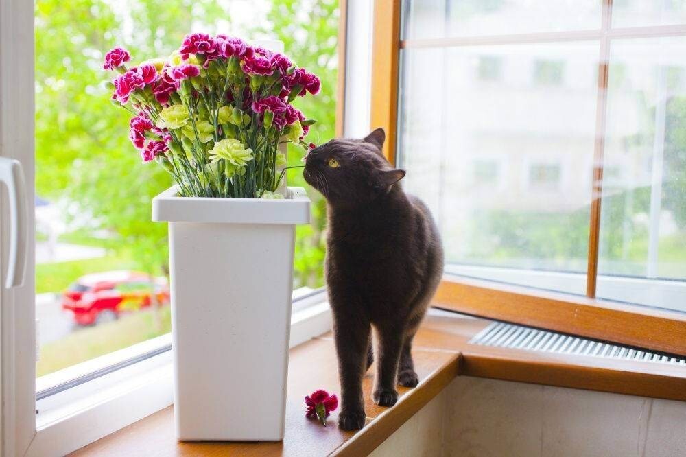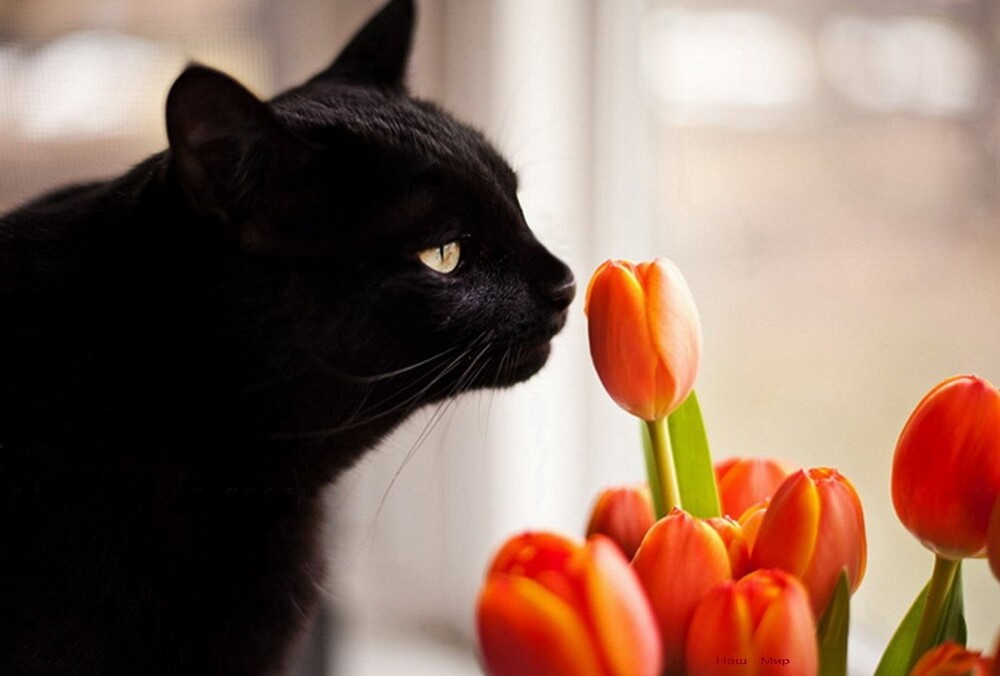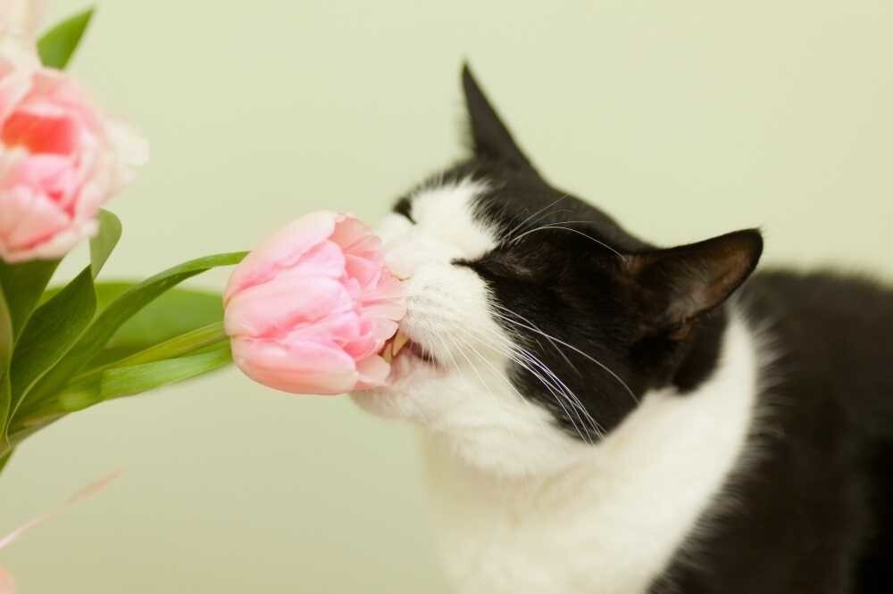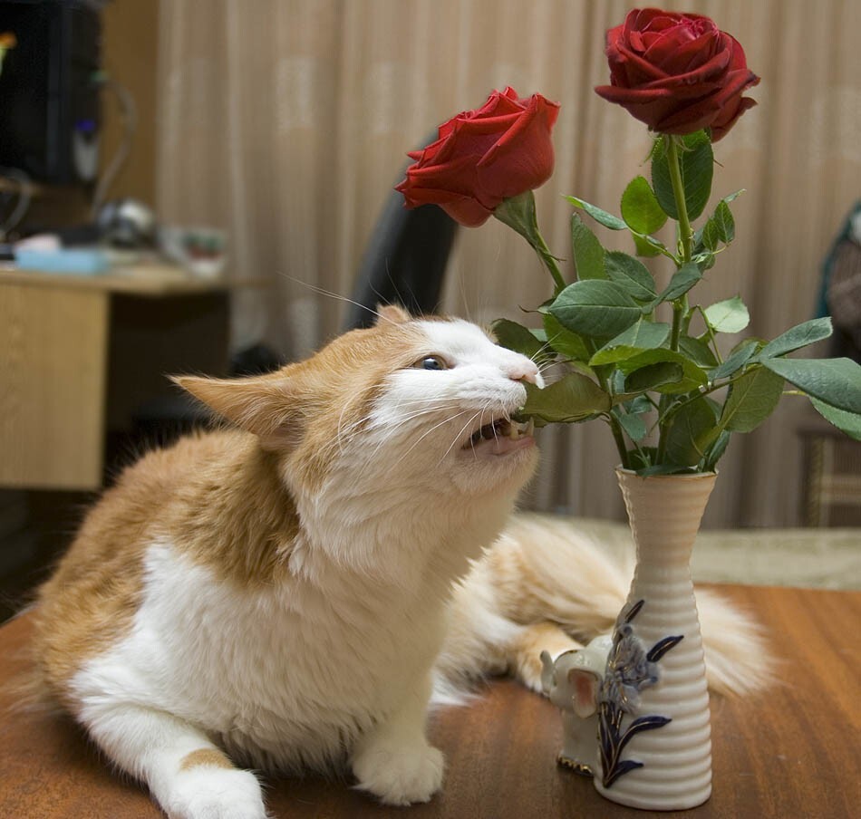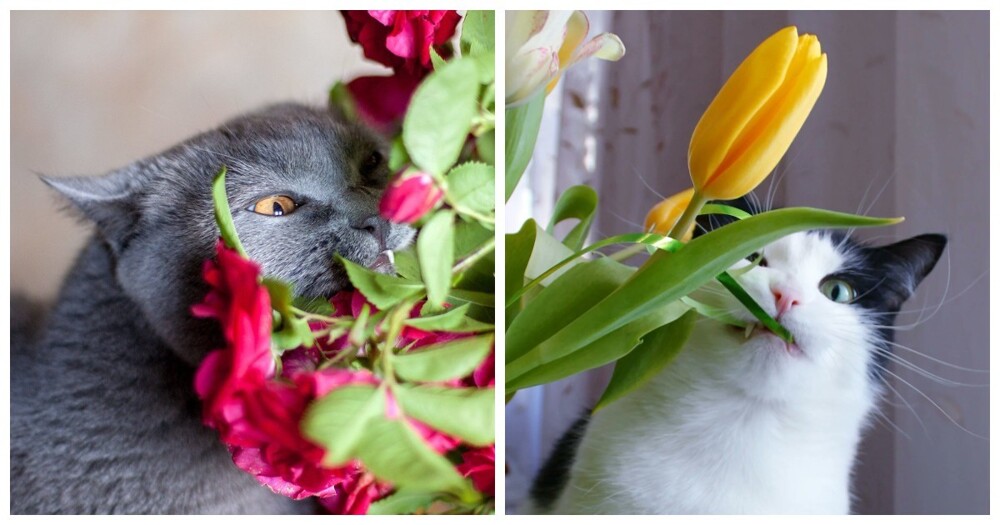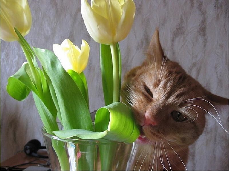 Конечно, женщинам в этот день принято дарить букеты и горшечные растения. А котикам – пробовать или хотя бы очень интенсивно нюхать, что, собственно, преподнесли хозяйкам. Не опасно ли это, вкусно ли и стоит ли вообще позволять приносить в дом эти странные штуки. В результате такой дегустации получаются забавные котофото, которые остаются как приятная память.