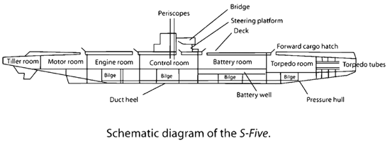 Межвоенный период потребовал серьезной модернизации флота во всех странах, так или иначе считавших себя морскими державами. Война, а тем более мировая, всегда вносит множество нововведений в военном деле и ускоряет гонку вооружений. Новое боевое средство — подводная лодка — показала себя с лучшей стороны, а значит, большая часть морских держав стремилась обзавестись ими, и желательно более качественными нежели у конкурентов. Не остались в стороне и США, и несмотря на разразившийся кризис, военный бюджет был принят, и новые субмарины сходили со стапелей. Одной из них была USS S-5, спущенная на воду 10 ноября 1919 года. Субмарина имела длину в 70 метров, водоизмещение в 890 тонн, несла четыре 533-мм торпедных аппарата и 100-мм пушку.