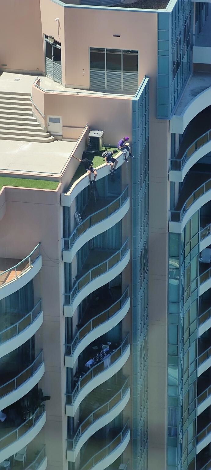 "Мы испугались, увидев мальчиков-подростков, болтающихся на высоте 30 этажей, - прокомментировал мужчина. - Не было никаких защитных ограждений, которые могли бы уберечь их. Мы не могли поверить своим глазам".