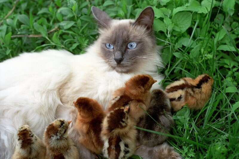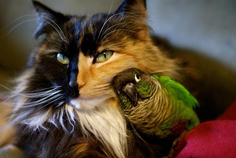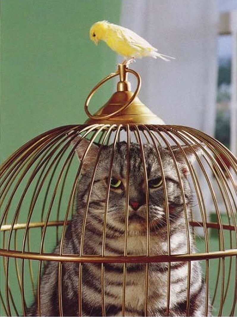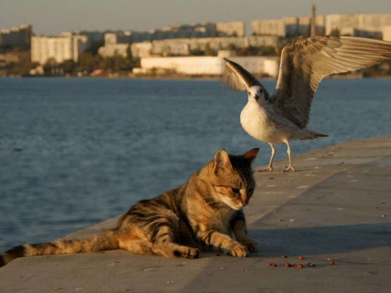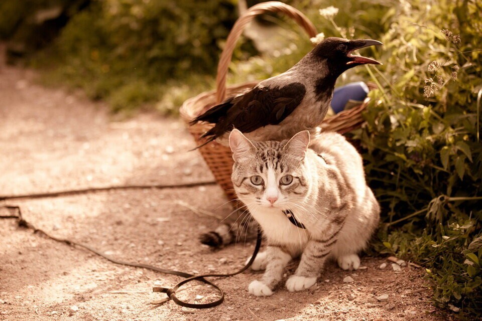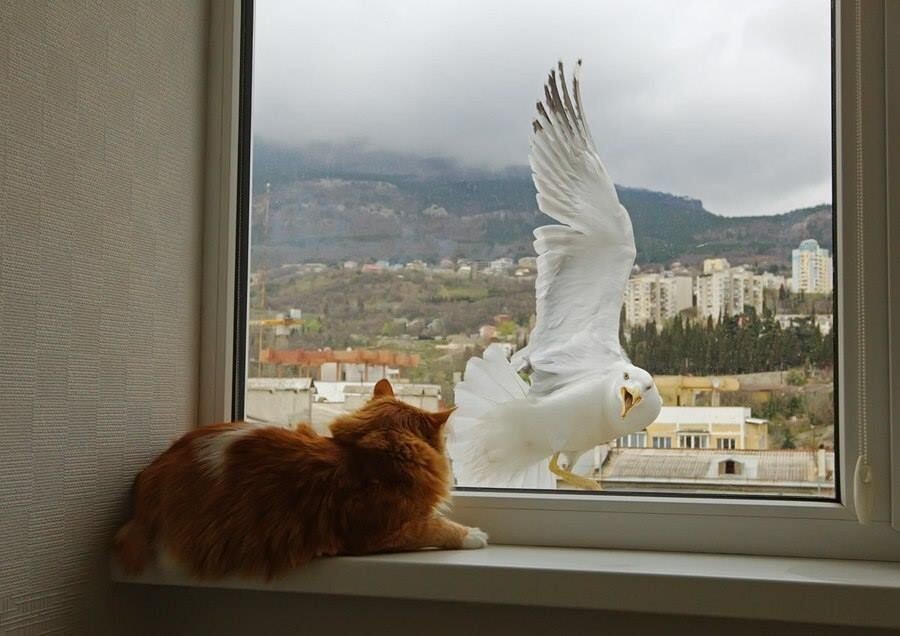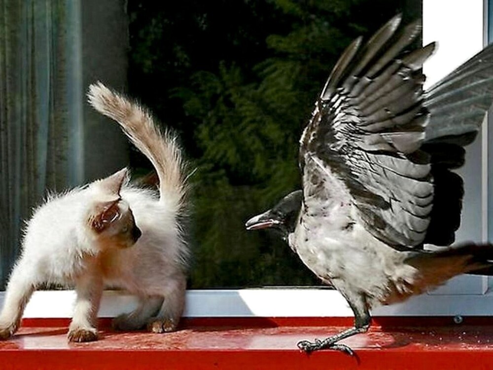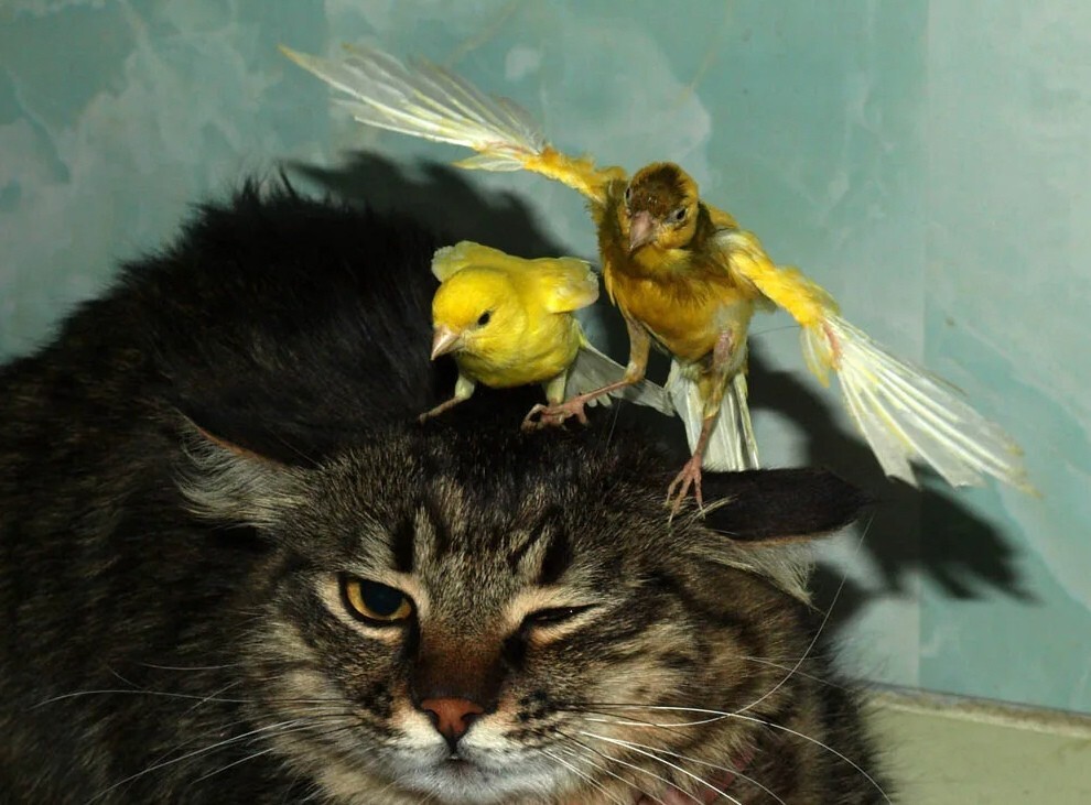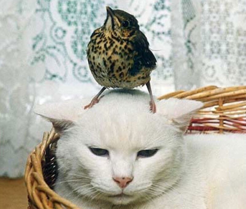 Но в реальности некоторые котики вычеркнули из своего генетического кода такую особенность и предпочитают с птичками дружить. И иногда даже уступают в спорах с этими крылатыми нахальными созданиями.