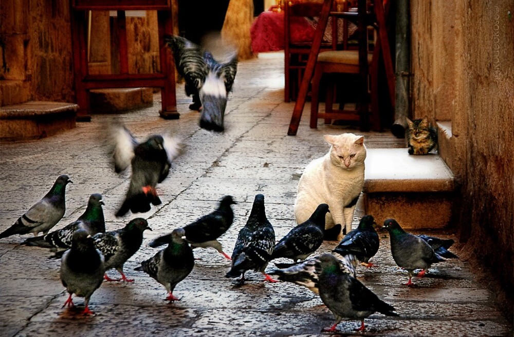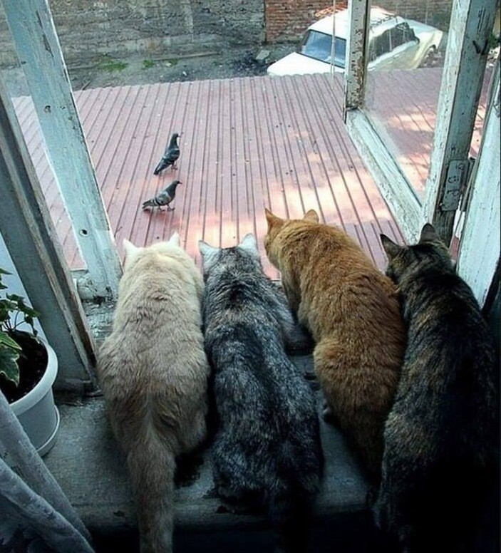 19. Из открытого окошка созерцают гулек кошки