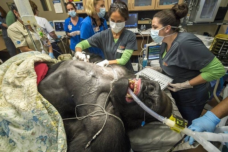 4. Самец гориллы проходит медицинский осмотр в зоопарке Майами