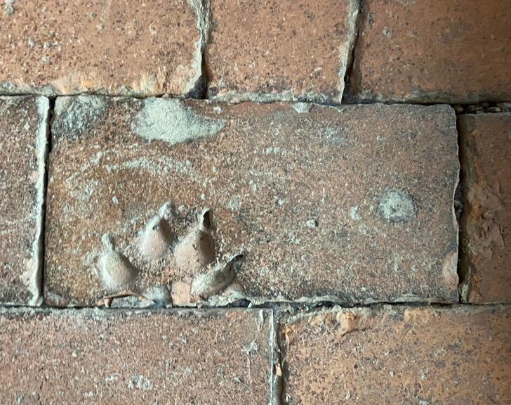 32. 900-летняя плитка на полу в Глостерском соборе с отпечатком лапы очень хорошего песика