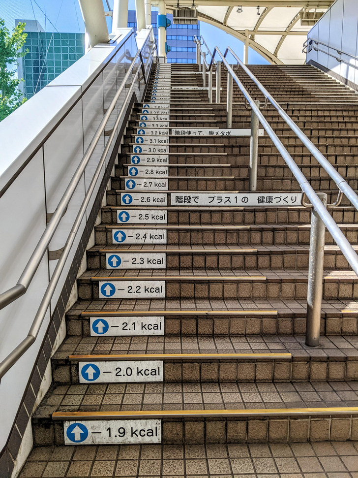 16. Лестница в Токио показывает, сколько калорий вы сжигаете с каждой ступенькой