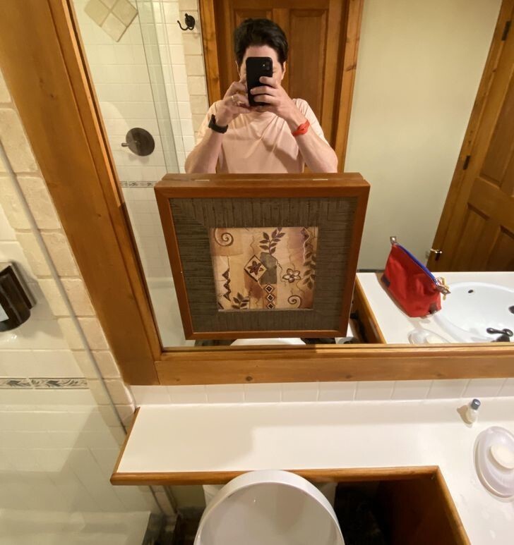 21. В отеле на зеркале в ванной висит рамка, чтобы гость не видел в отражении, как он писает