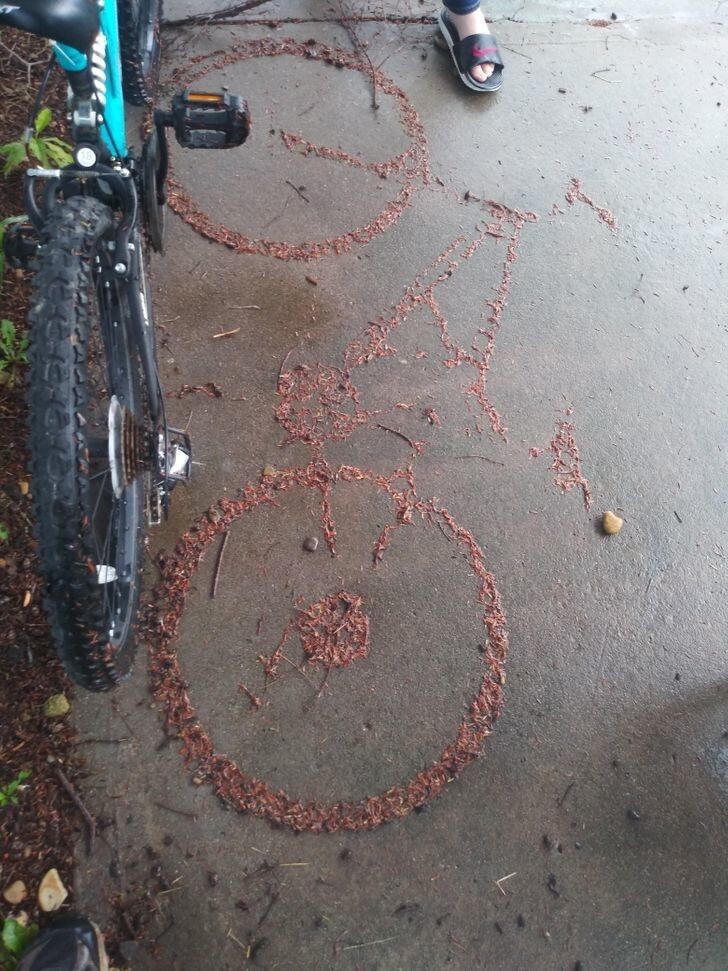 29. Сосновые иголки сложились в силуэт велосипеда