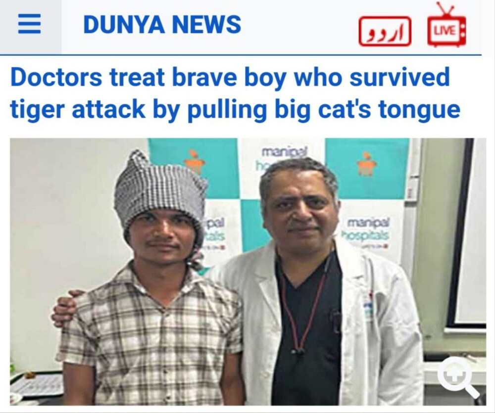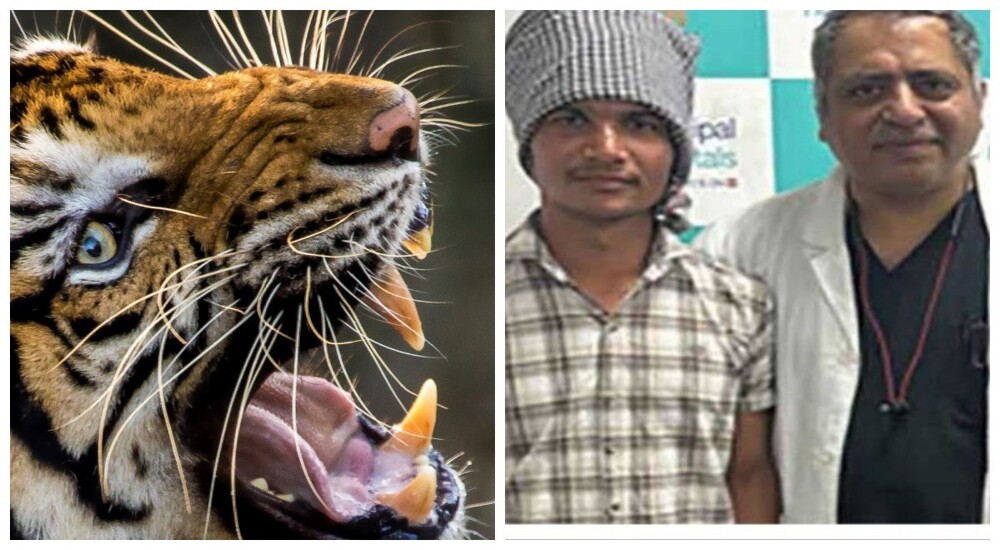 В Индии подростку удалось спастись от тигра, потянув его за язык (3 фото)